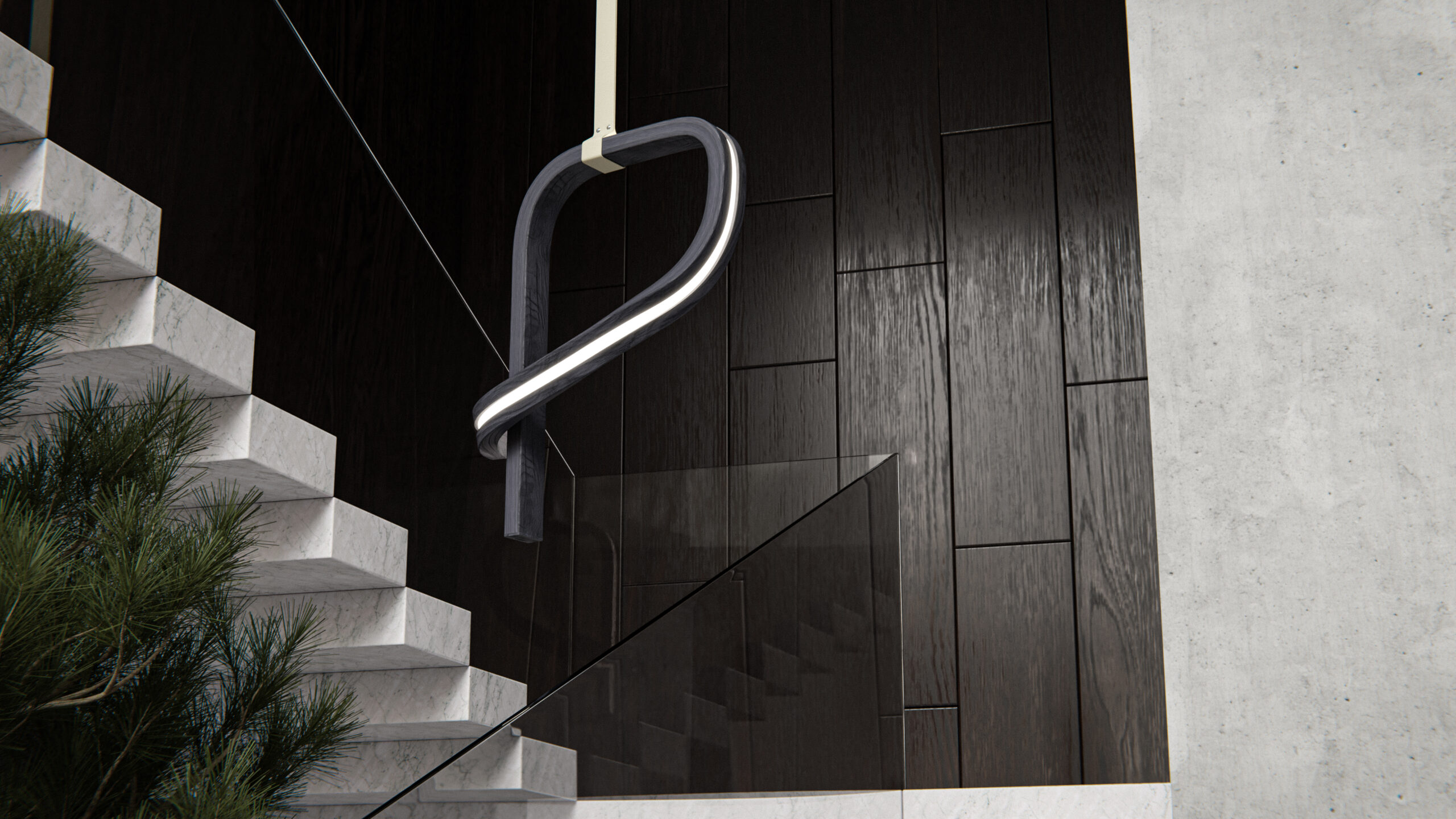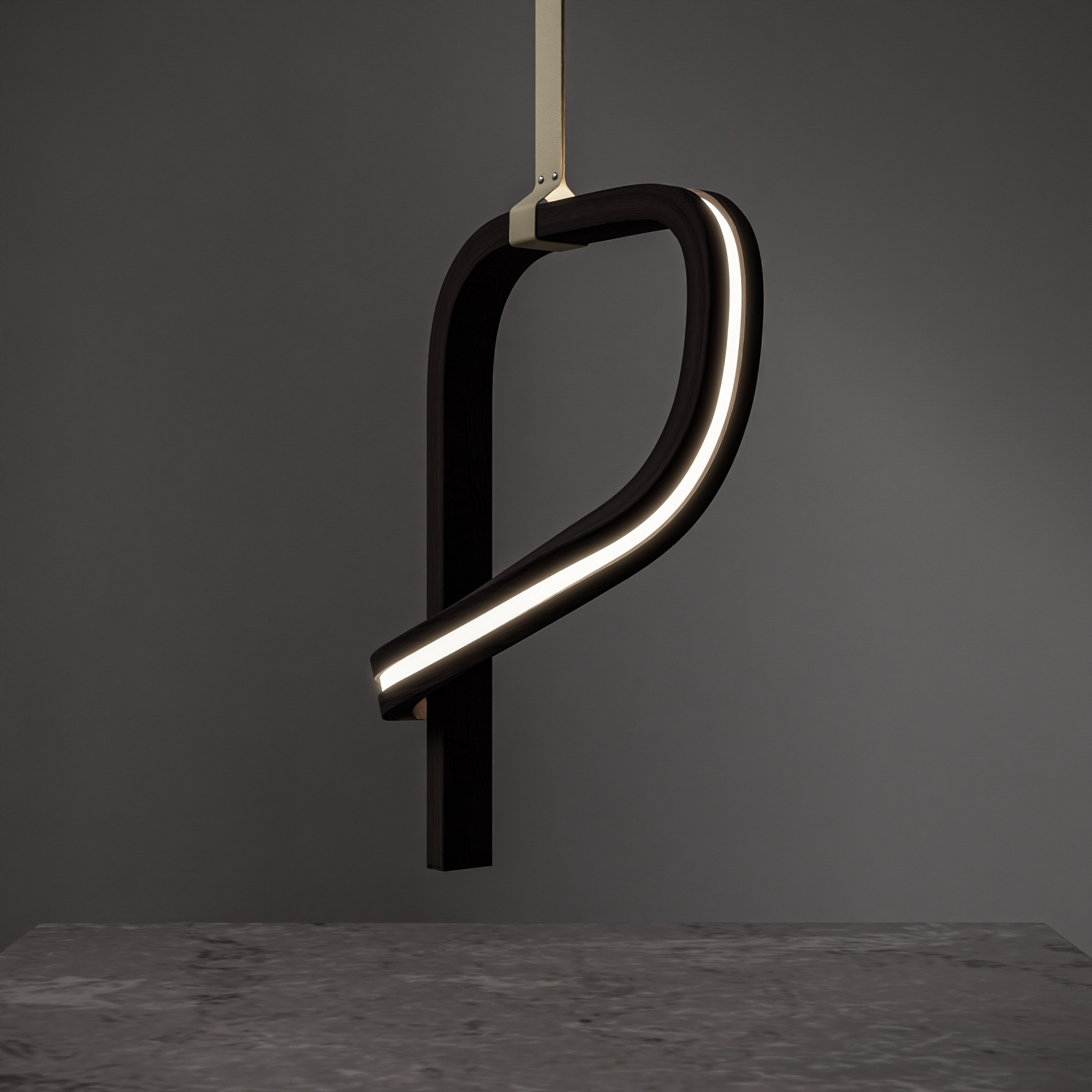 EON is our manifesto and a play with the concept of infinity. We asked ourselves: is it possible to capture light in a form that has no clear beginning or end? The result is a dynamic, asymmetrical loop that seems to float in the air, constantly changing its shape depending on the viewer’s perspective. It’s an object that lives and creates visual tension in space.
